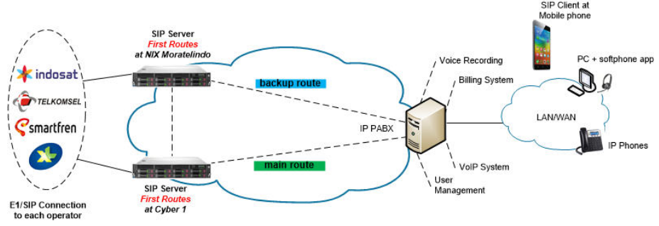 Topologi Pemasangan Matrix Telecom SIP Register (contoh outgoing number: 021 – 022 – 024 – 031 – 0361 – 0251)