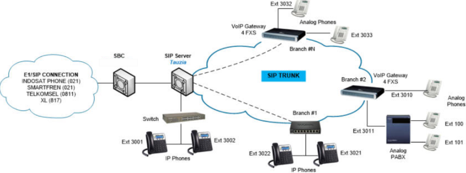 Topologi Matrix Telecom SIP Register untuk Sambungan Antar Cabang Dengan Extension